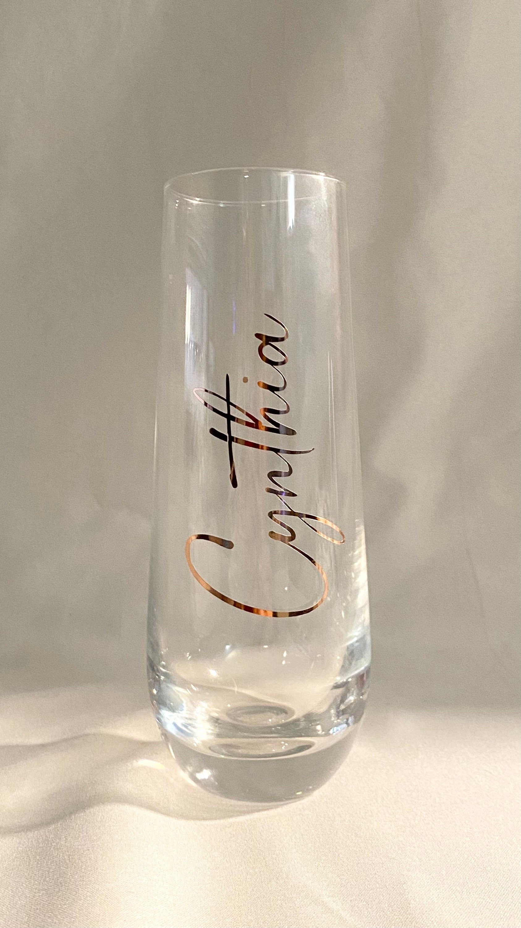 Now it's your turn to pop the question. First, Congratulation's are in order! There is no better way to ask your Bridesmaids and MOH to help you and be by your side during this new chapter of your life. Box Dimensions: 8L x 8W x 4H The box is pink with a Luxurious magnetic closure. The box will be fully assembled and ready for gifting. What's in the box: - Satin Scrunchie - Diamond Pen With the title on it (Bridesmaid, Maid of honor, Matron of honor, mother of the Bride) - Personalized Glass Champagne Flute -Personalized Rose Gold Double Compact Mirror -Knot Rose Gold Bangle -Personalized Bridesmaid Proposal -Bridal party Stickers -White Crinkle Paper Please Enter the name and title of the recipient.